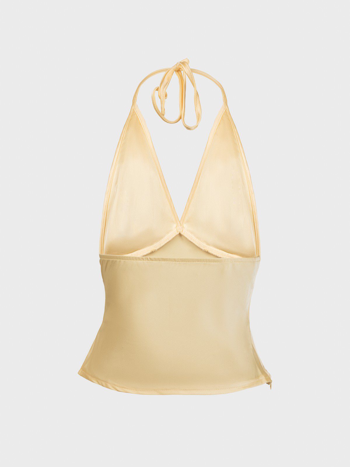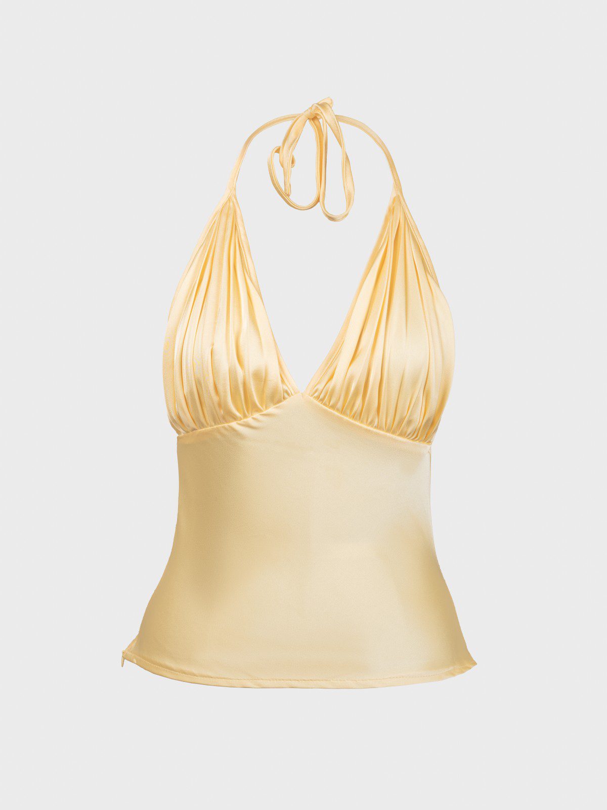 Butter is Buttery satin halter top -with gathered cups is your sleek, sunlit essential, This is extremely high quality satin that doesnt wrinkle easily